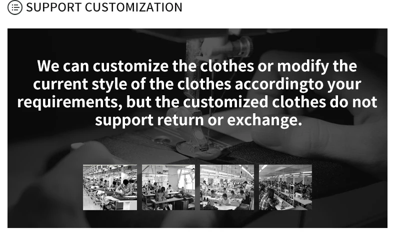 2.If the size, color, and style displayed on the page are not suitable for you, we can customize the style, color, and size of the clothes according to your needs. You can provide your specific size (including height, weight, chest, waist, and hips), but customized clothes do not support returns or exchanges.Some customization requirements require additional customization fees, you can contact customer service for consultation.