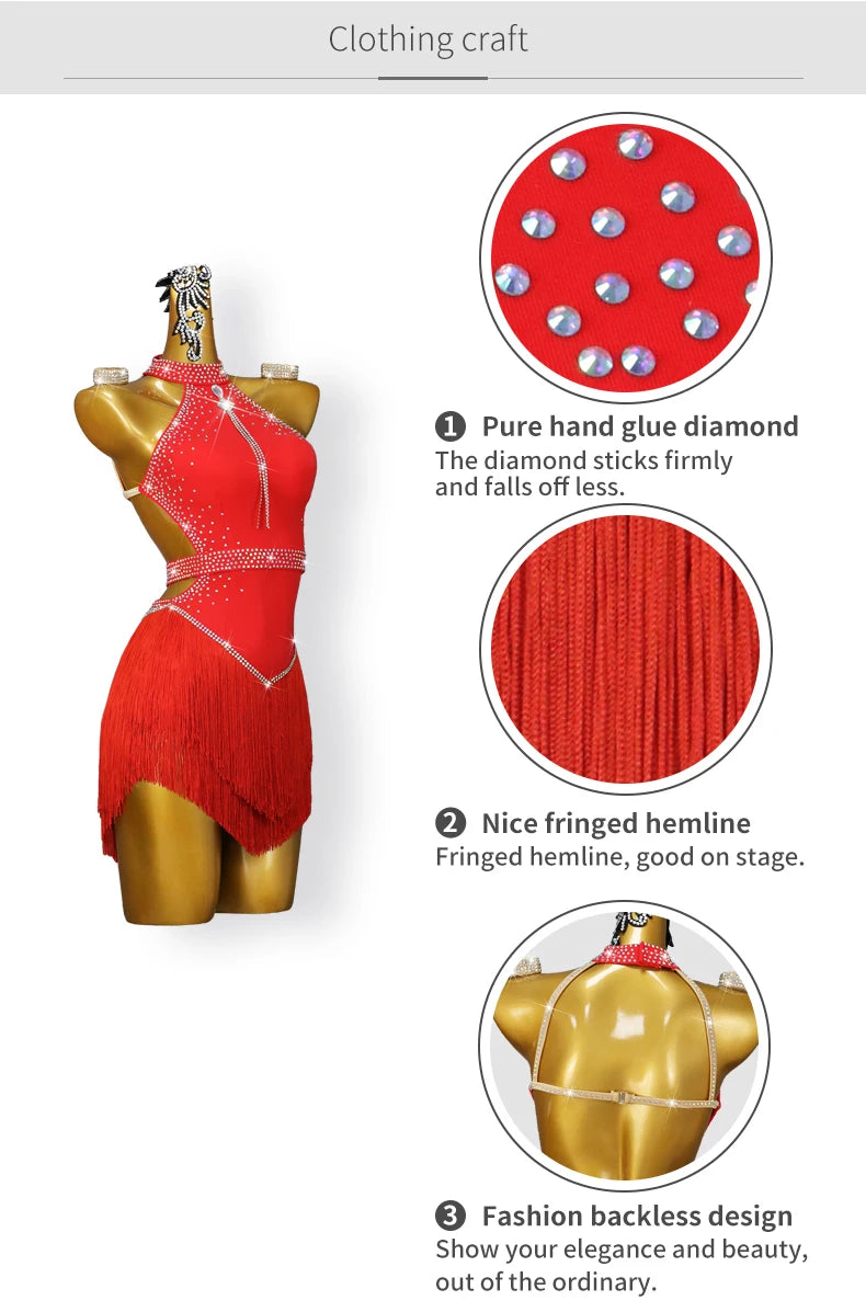 2025 Latin Dance Women Tassel Skirt Sexy New Adult Competition Evening Dress Female Clothes Sport Party Girl Line Suit Customize