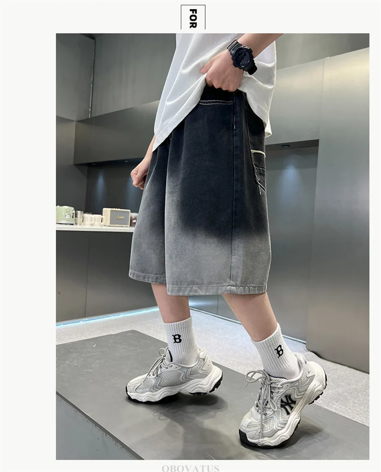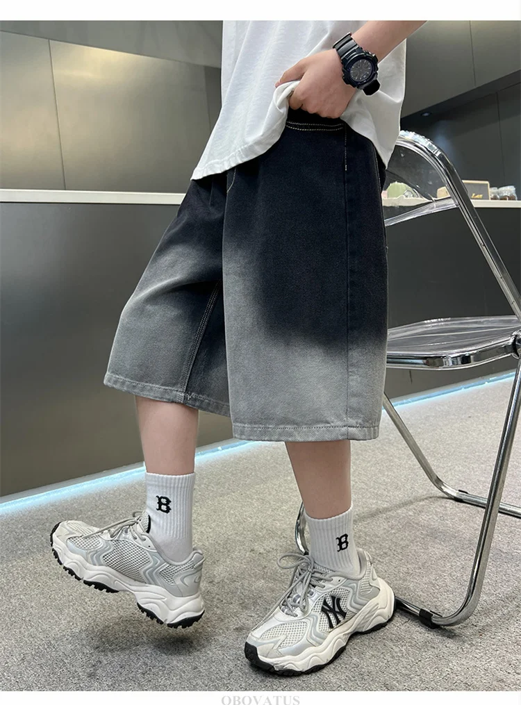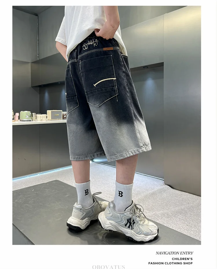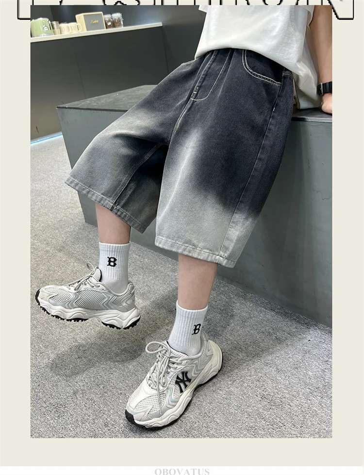 2025 New Summer Kids Designer Gradient Black Denim Shorts Tweens Boy Casual Straight Jeans Shorts For Child Age 5 6 8 10 12 14 T