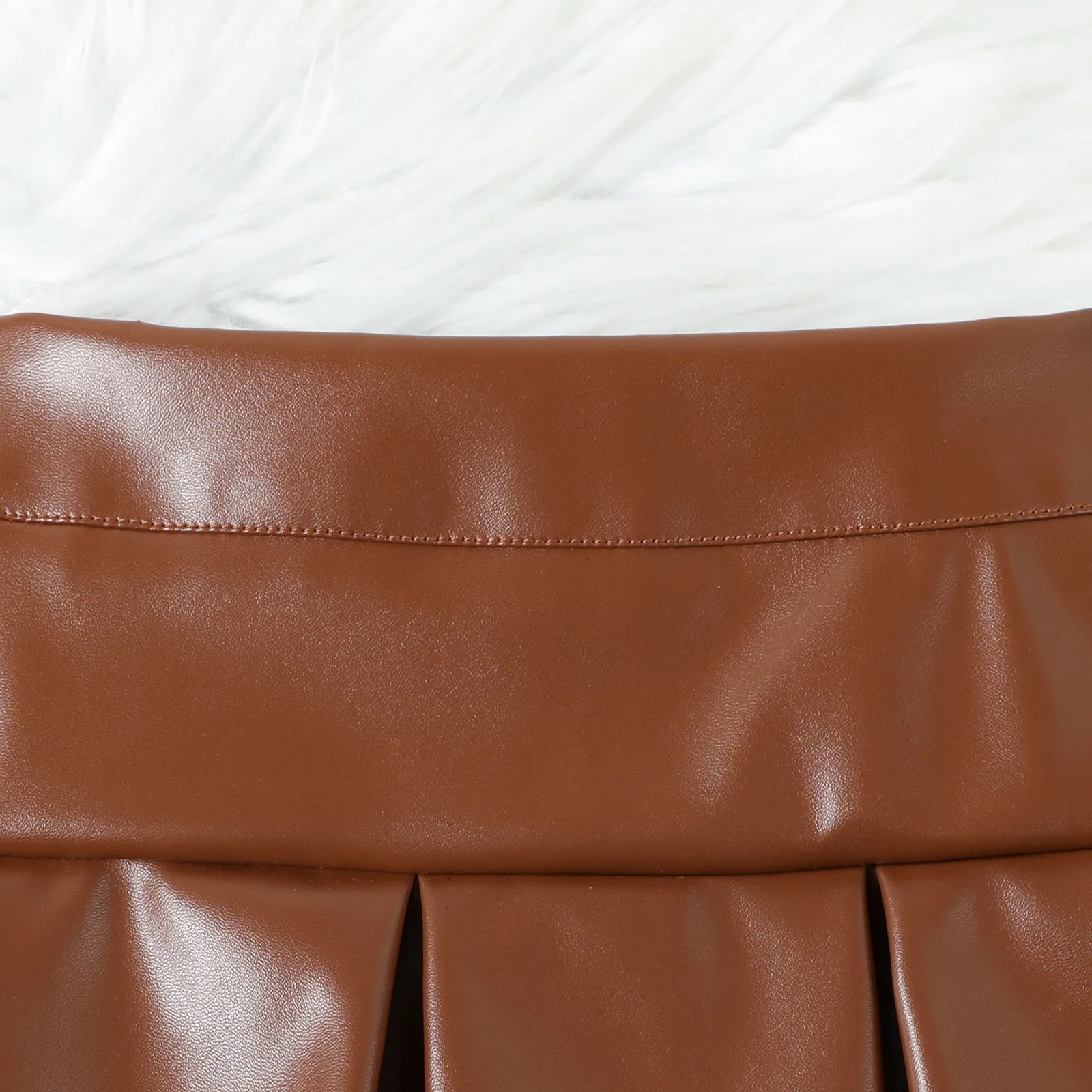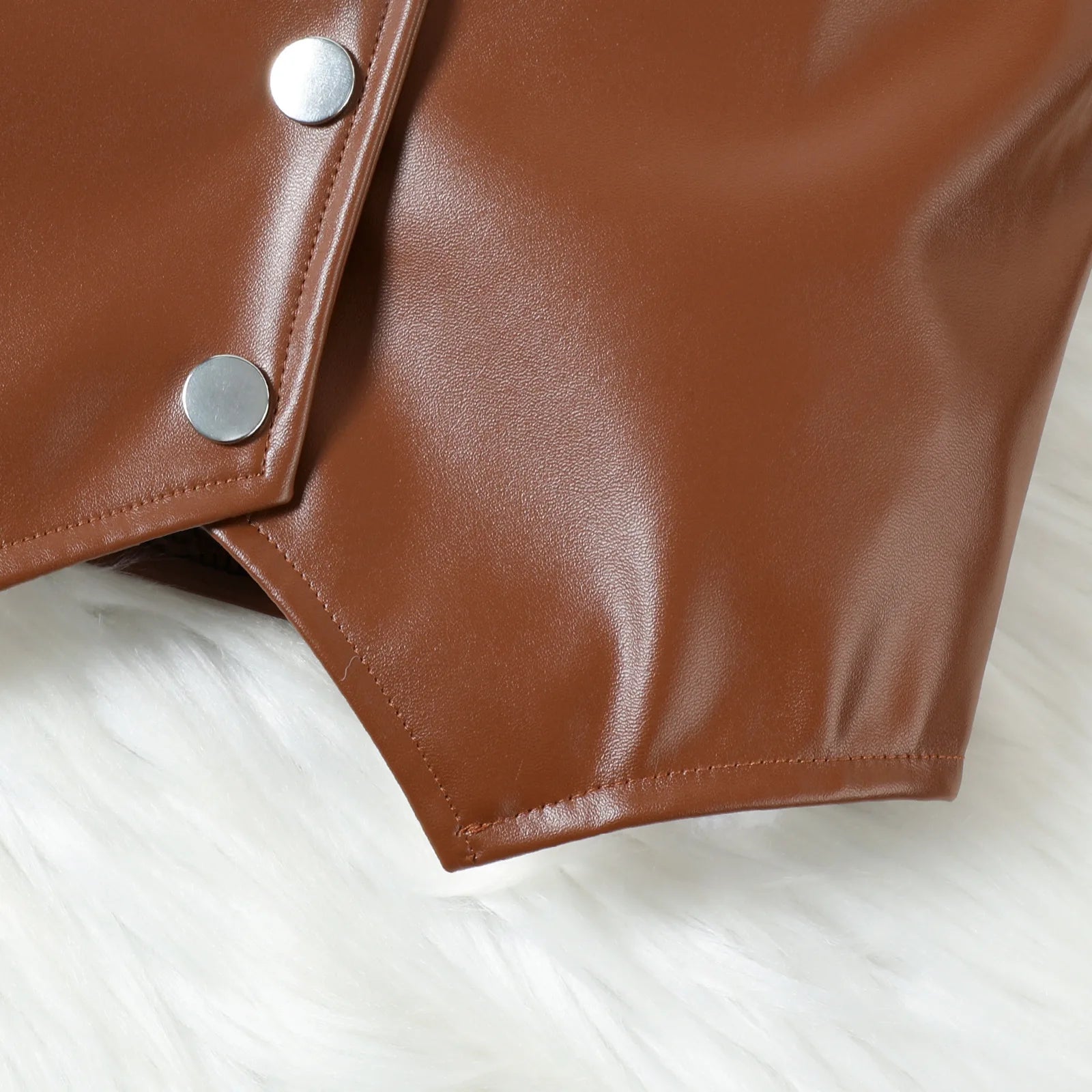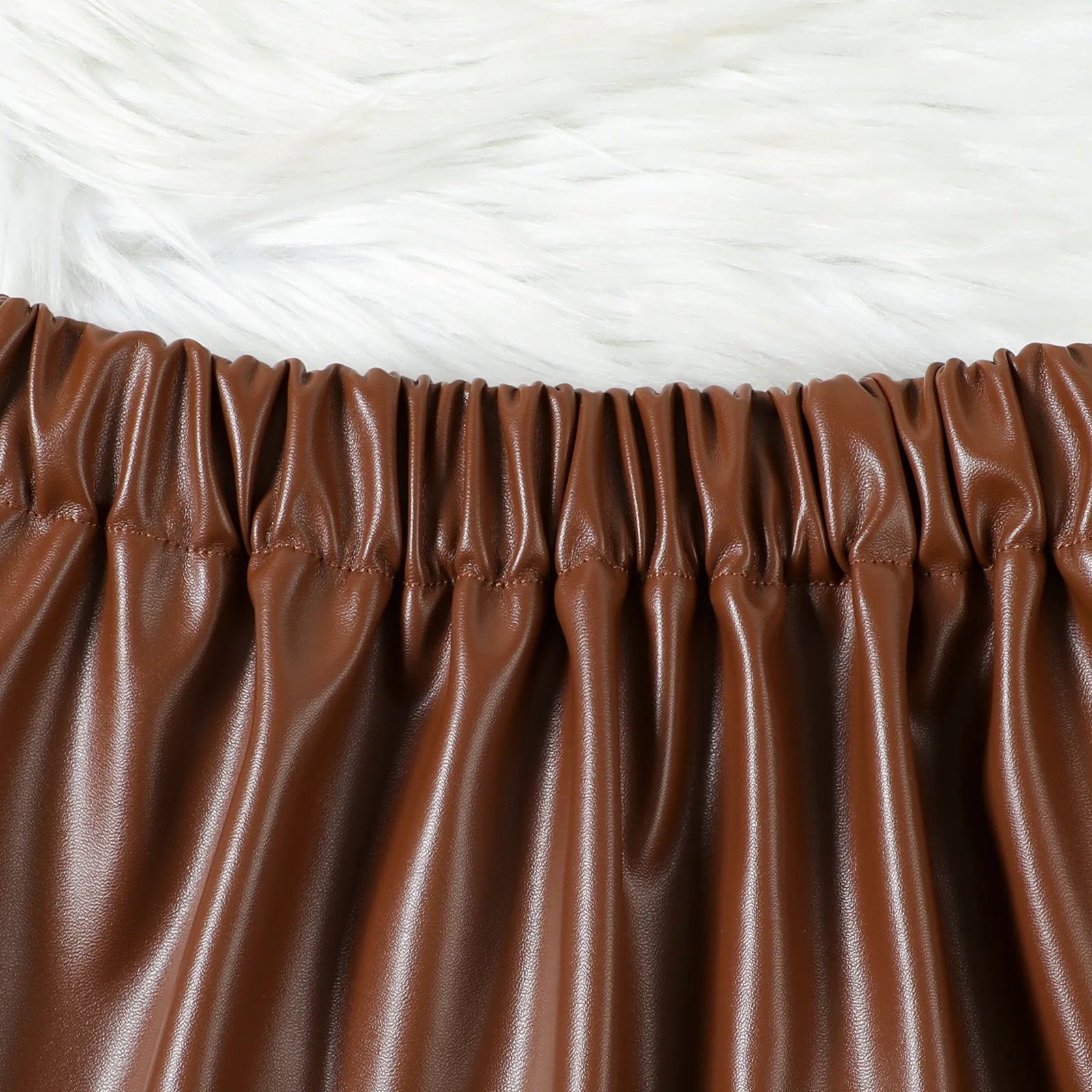 Autumn Fashion Cool Girls' Clothes Set V-Neck Pu Leather Vest Jacket With Pleated Skirt Two-Piece Set For Children's Clothing
