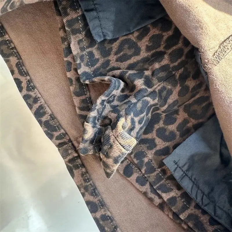Elastic Brown Leopard Print Denim Hip Skirt