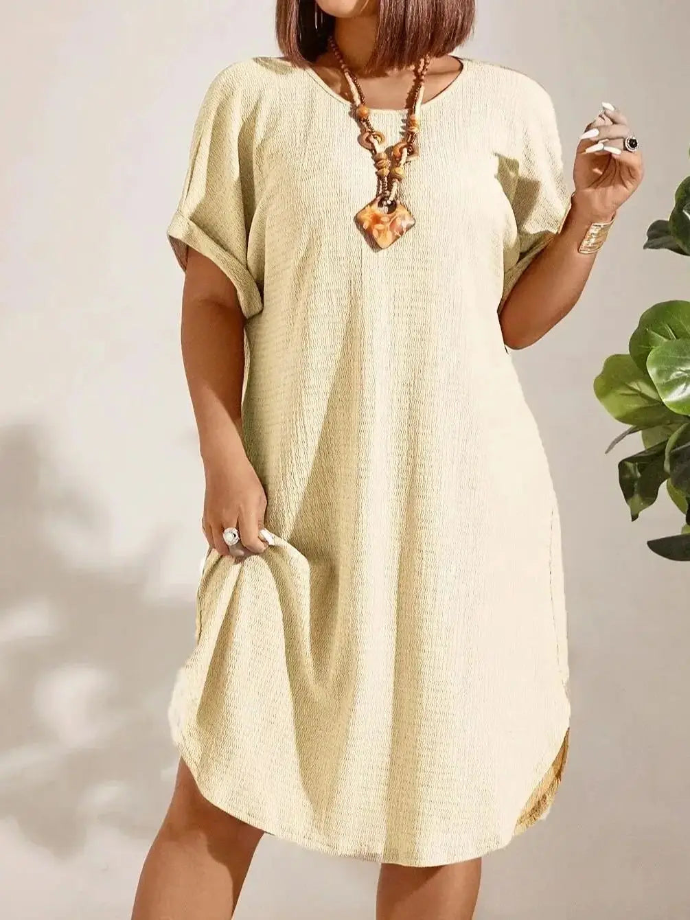 European and American large-size women's clothing 2025 summer new short-sleeved solid color dress large-size