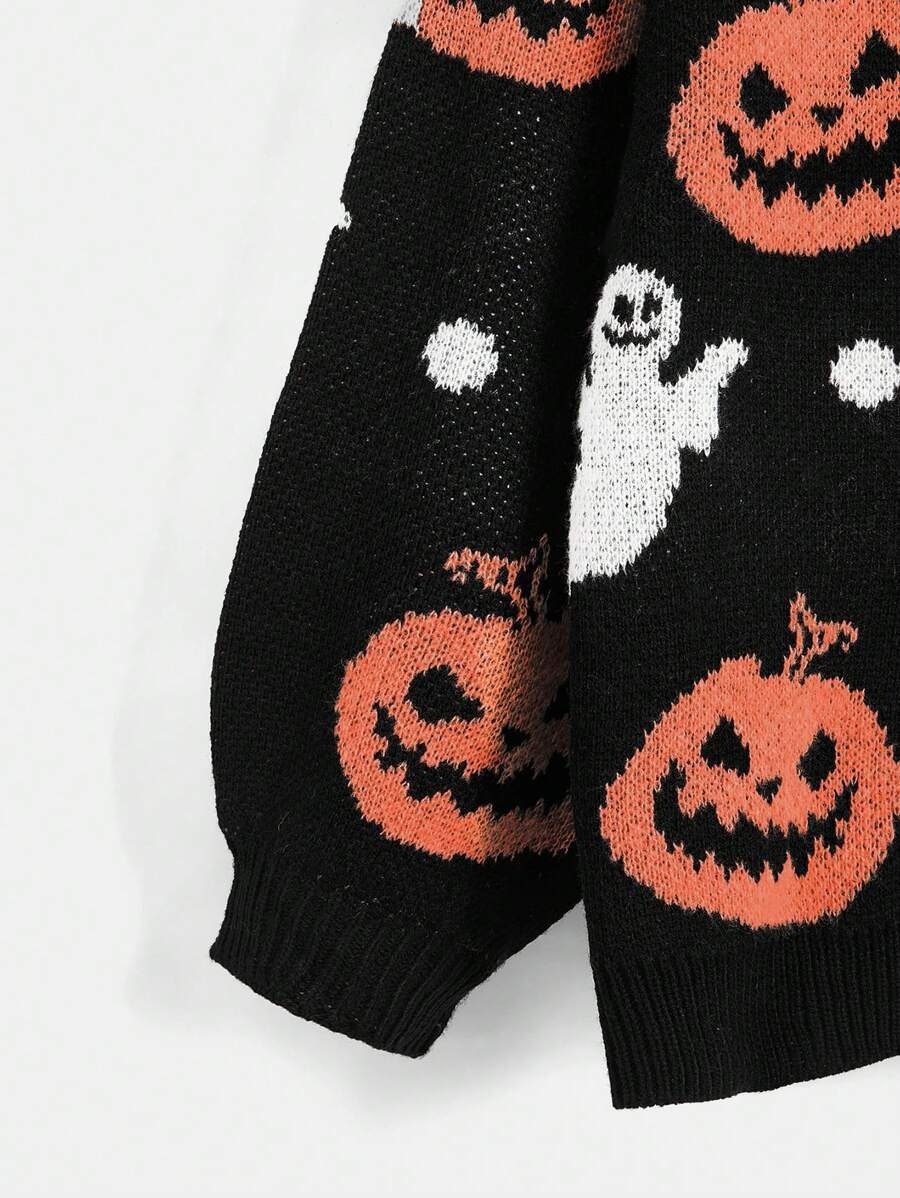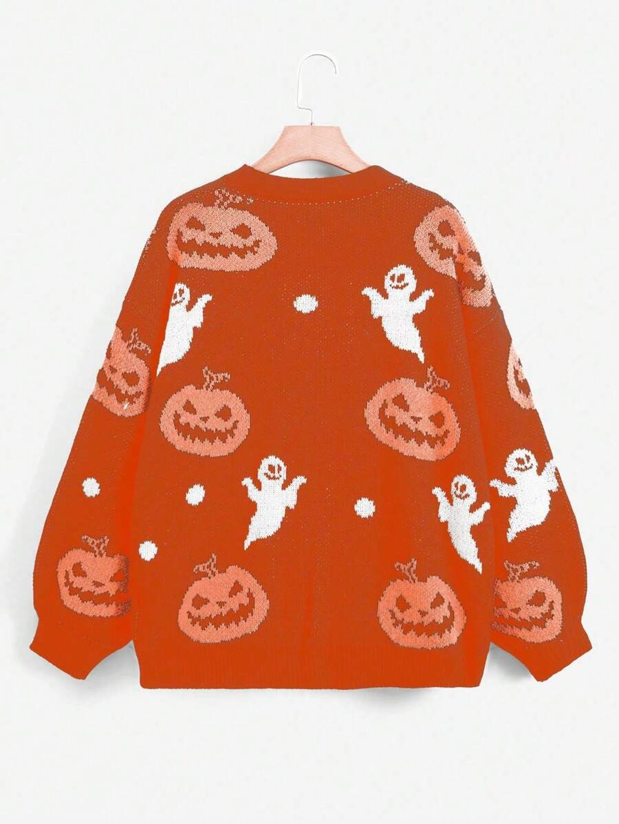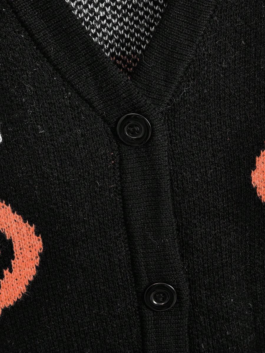 Halloween V-neck Loose Pumpkin Jacquard Cardigan