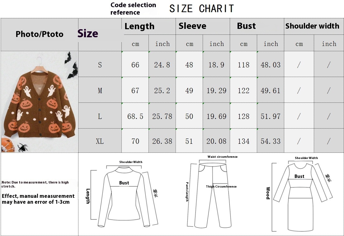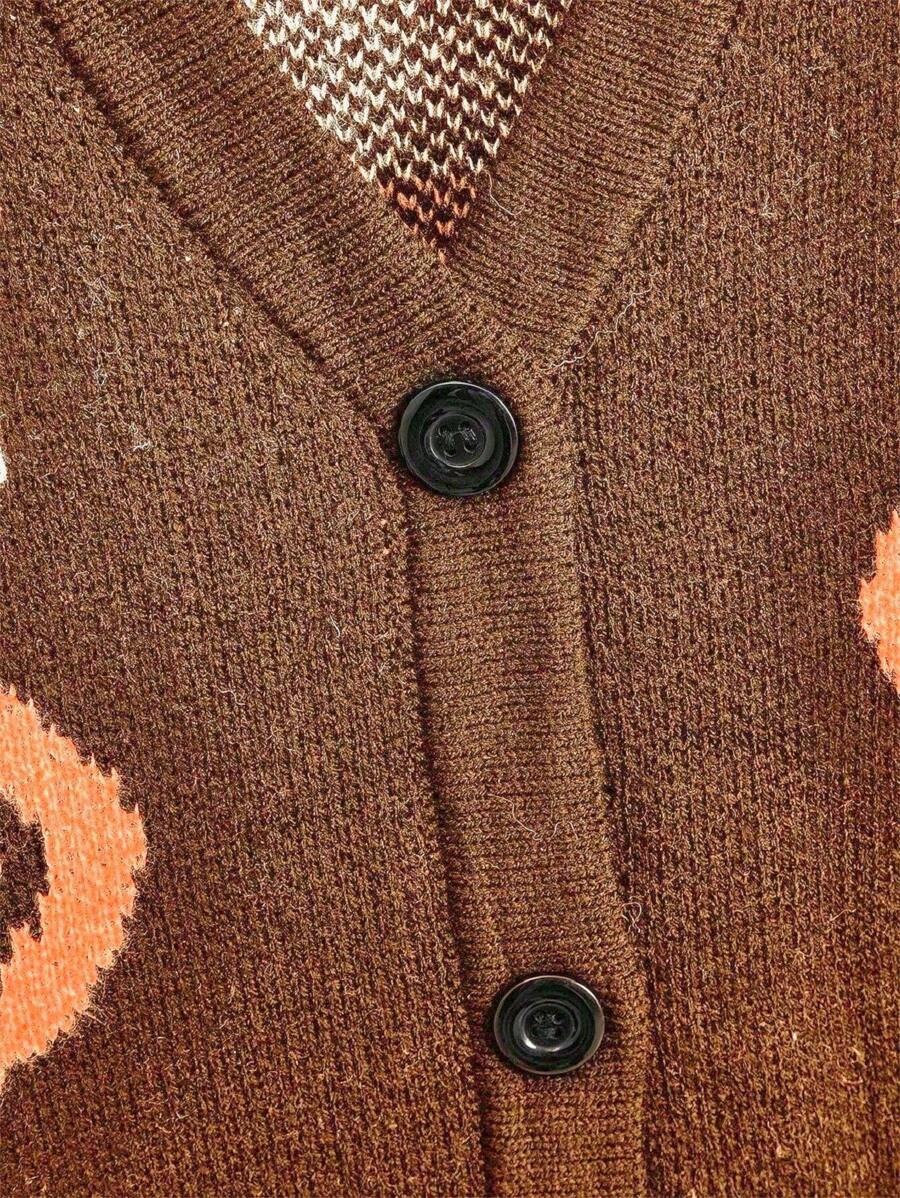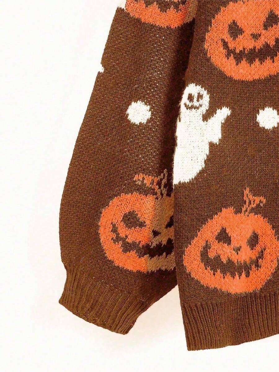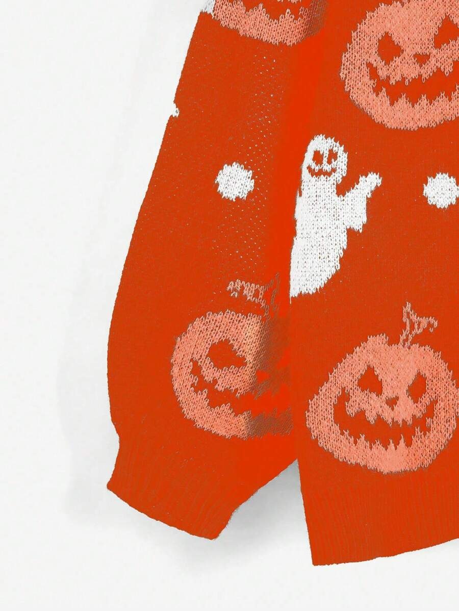 Halloween V-neck Loose Pumpkin Jacquard Cardigan