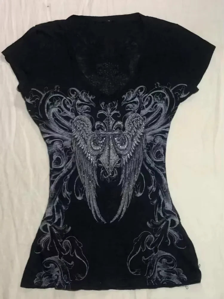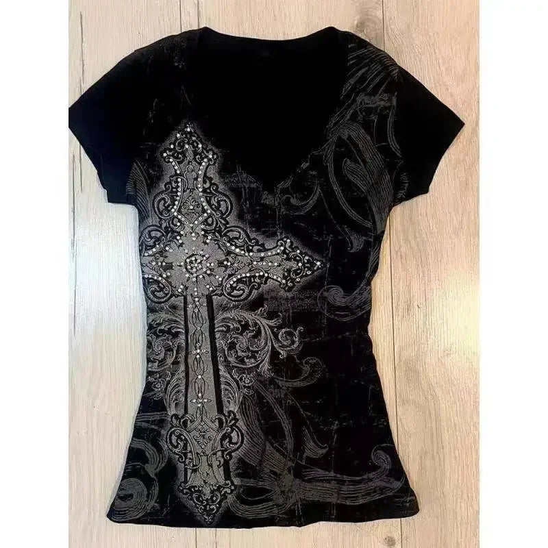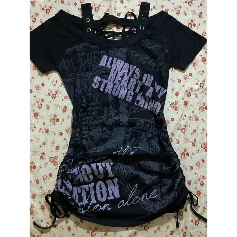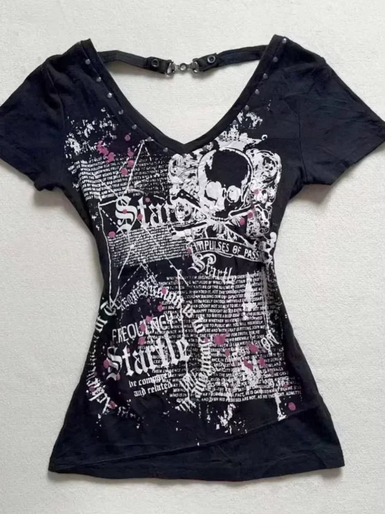 Vintage Clothes Women Print Sexy Punk Streetwear Slim Femme Tees Shirt Gothic Casual Grunge T Shirts 2000s Emo Y2k Crop Top